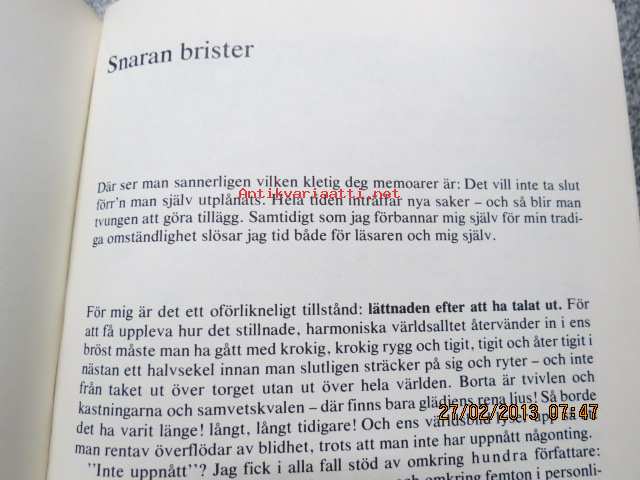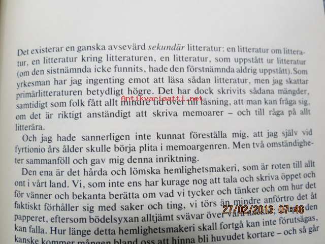 | Saatavilla | 1 kpl | | Julkaisuvuosi | 1975 | | Sivuja | 449 | | Painos | 1. | | Kunto | K3 | | Kansipaperi K2 | | Sidonta/painoasu | Sidottu (kansipaperit) | | ISBN | 91-46-12399-7 | | Kielet | Ruotsi |