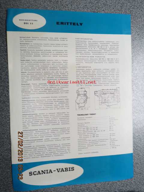 Scania-Vabis DSI 11 meridieselmoottori -myyntiesite