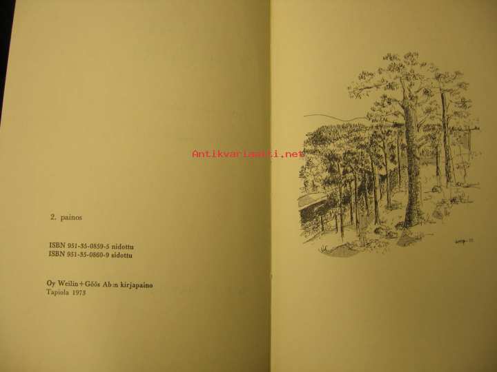 | Saatavilla | 1 kpl | | Julkaisuvuosi | 1973 | | Sivuja | 179 | | Painos | 2 | | Kunto | K3 | | hyvä / tyydyttävä, ei ed. om. nimeä | | Sidonta/painoasu | Sidottu (kansipaperit) | | ISBN | 951-35-0860-9 sid | | Kielet | Suomi |
