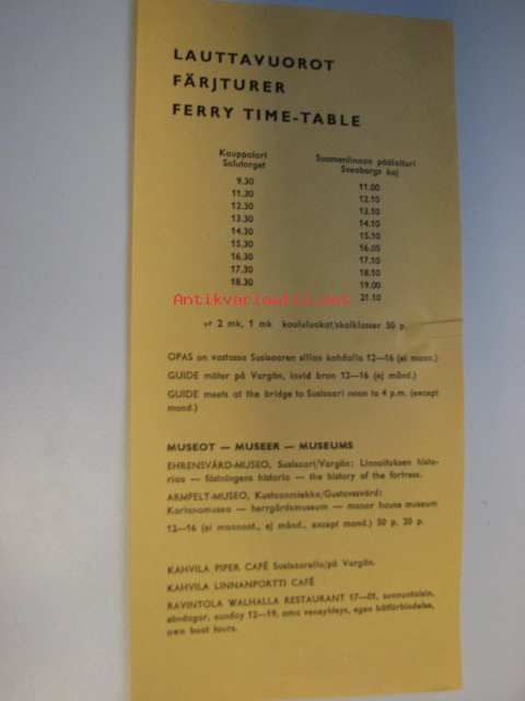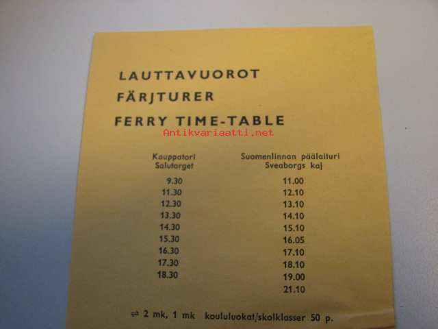 Helsinki lauttavuorot / färjturer / ferry fime-table Kauppatori - Suomenlinnan päälaituri
