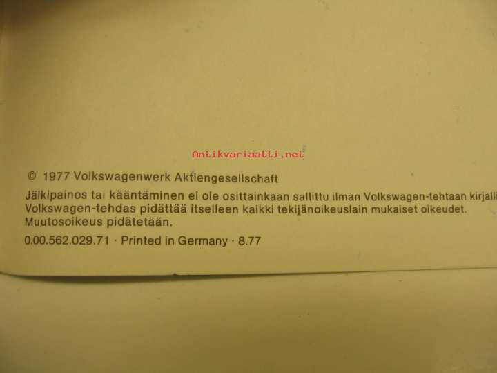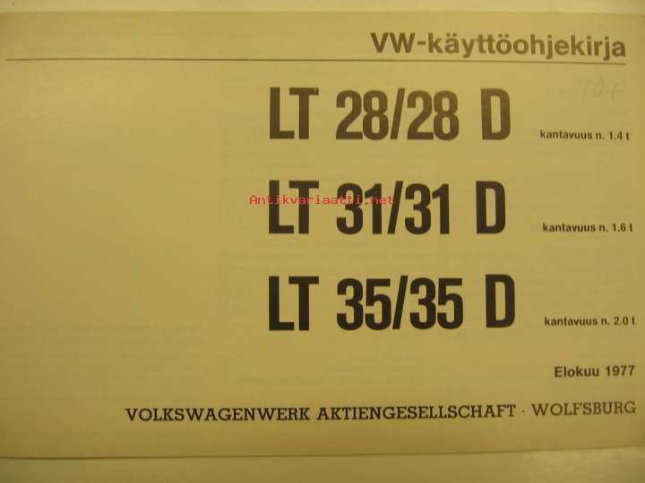 Volkswagen LT LTD vm. 1978 -käyttöohjekirja