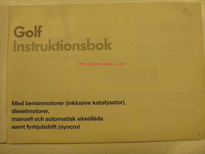 Volkswagen Golf åm. 1989 instruktionsbok