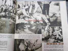 Miesten Kesken 1951 nr 5 -miehille suunnattu ajanvietelehti mm. artikkeli; Opiumsalakuljetusta kamelinvatsassa, Albert Einstein, Ympärileikkaus, Kevytmielinen kesämuoti, Teuvo Aura21 x 30 cm.