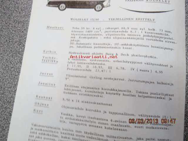 Wolseley 15-60 -myyntiesite