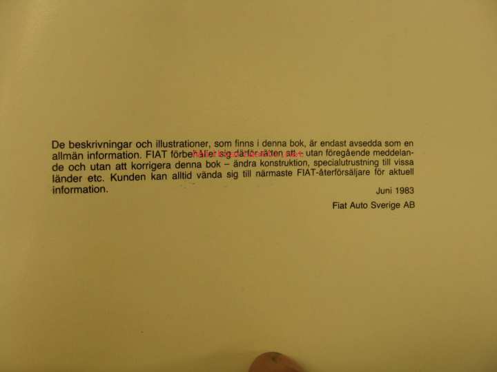Fiat Auto Sverige Ab, 1983Instruktionsbok.