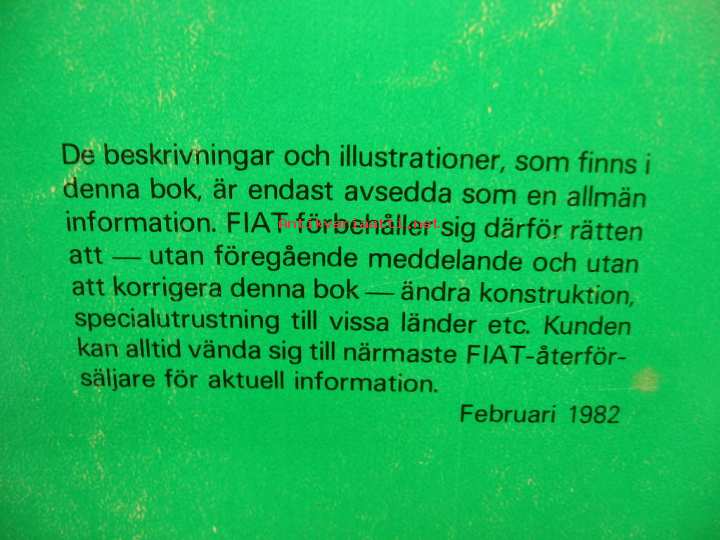 Fiat, 1982Instruktionsbok.