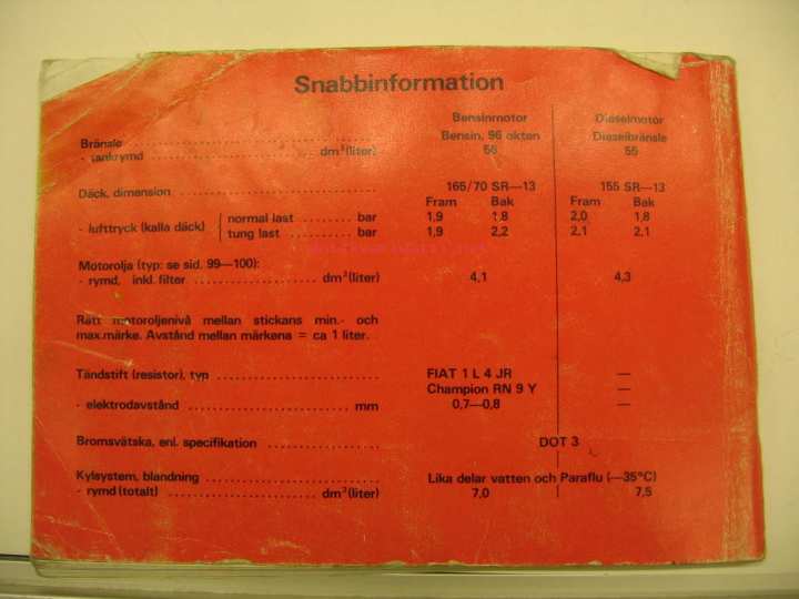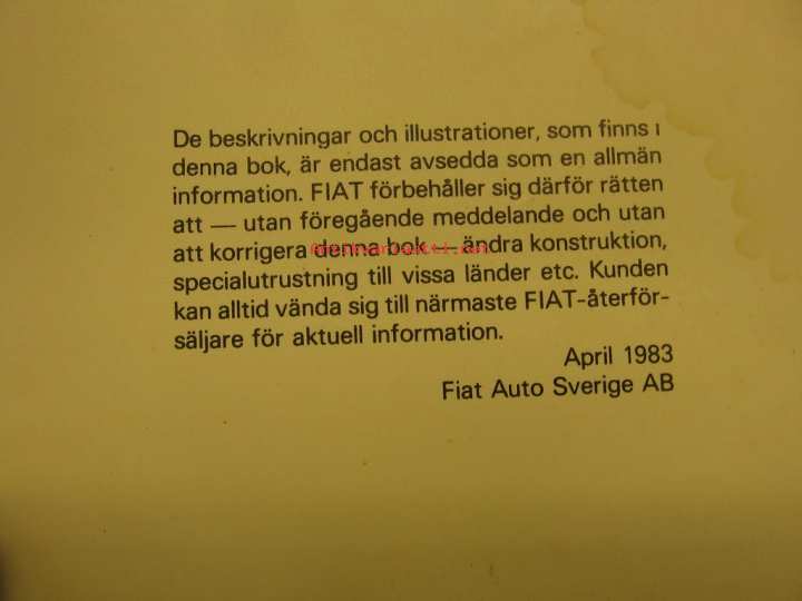 Fiat Auto Sverige Ab, 1983Instruktionsbok.