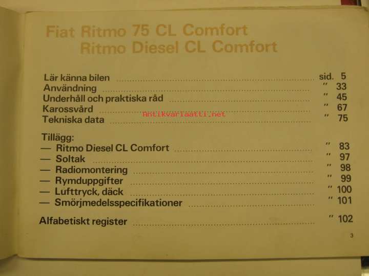 Fiat Ritmo Comfort Instruktionsbok åm. 1983