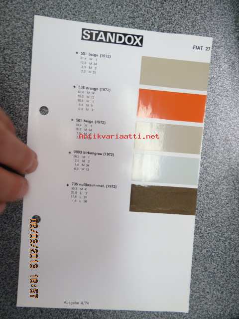 Standox Fiat 27 värimallit 1973 lisäykset mallikirjaan