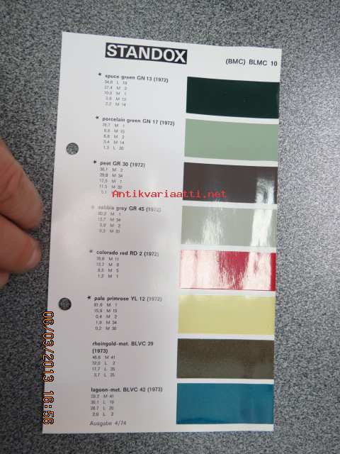 Standox BMC BLMC 10 värimallit 1973 lisäykset mallikirjaan