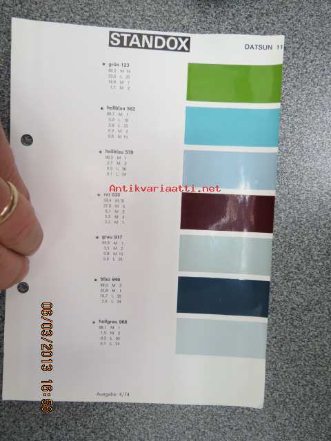 Standox Datsun 11 värimallit 1973/74 lisäykset mallikirjaan