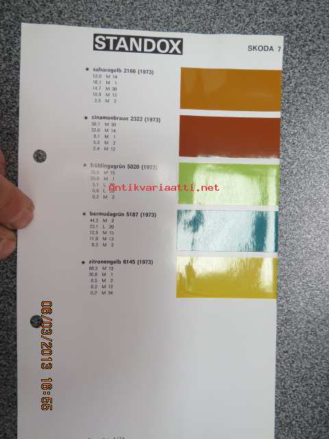 Standox Skoda 7 värimallit 1973/74 lisäykset mallikirjaan