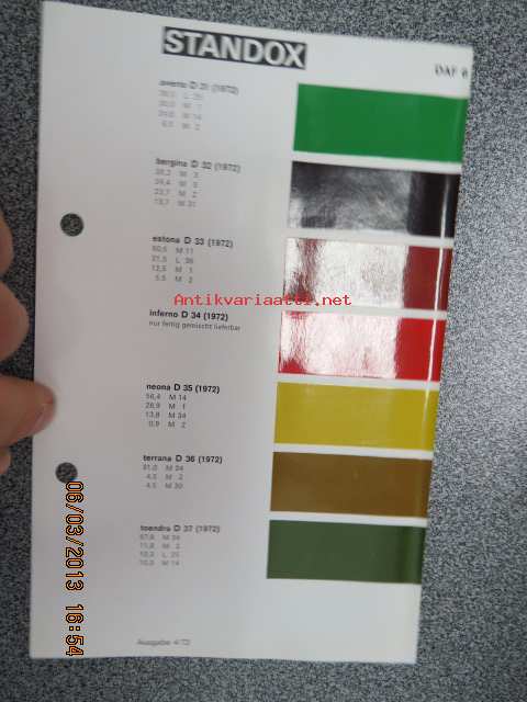 Standox Daf 6 värimallit 1973/74 lisäykset mallikirjaan