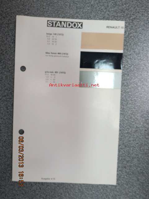 Standox Renault 15 värimallit 1973/74 lisäykset mallikirjaan