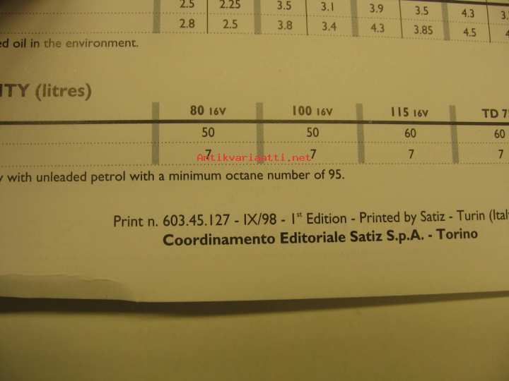 Fiat, 1998Engalnninkielinen omnistajan käsikirja.
