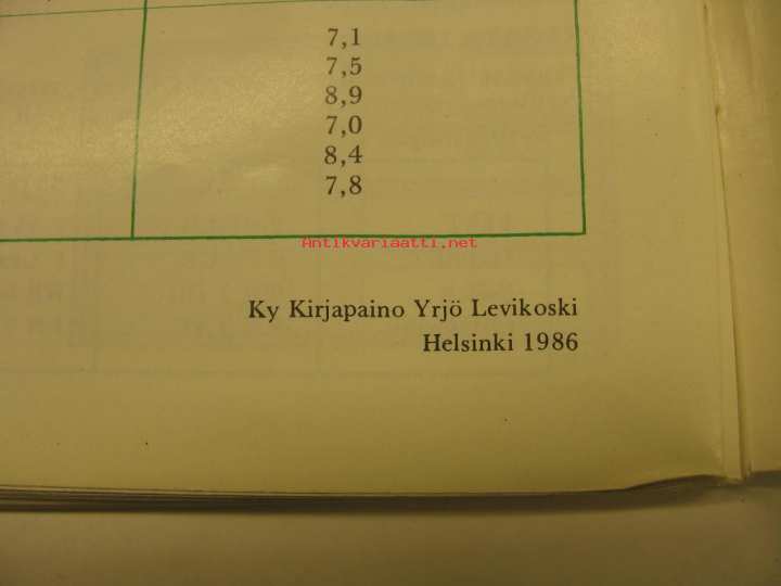 | Saatavilla | 1 kpl | | Julkaisuvuosi | 1985 | | Sivuja | 149 | | Kunto | K3 | | Sidonta/painoasu | Nidottu (pehmeäk.) | | Kielet | Suomi |