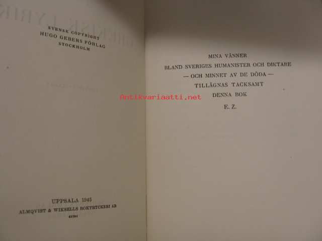 Zilliacus Emil, Schilds Förlag, 1945Kreikkalaista lyriikkaa ruotsiksi