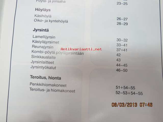 | Saatavilla | 1 kpl | | Julkaisuvuosi | 197? | | Sivuja | 58 | | Kunto | K3 | | Sidonta/painoasu | Nidottu (pehmeäk.) | | Kielet | Suomi |