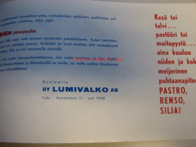 Pastro, Renso, Silja pesujauhe / Lumivalko Oy -mainos