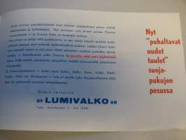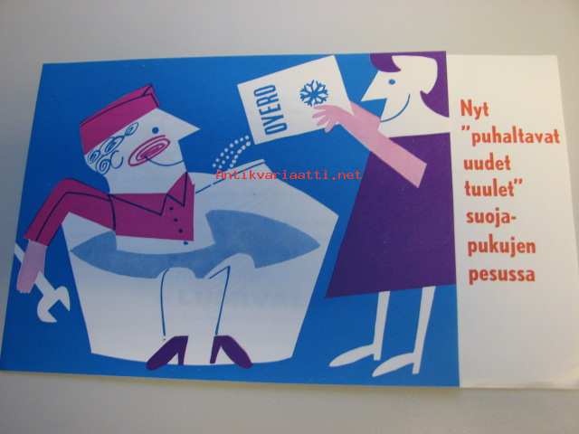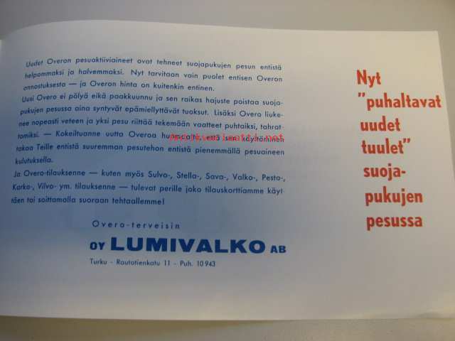 Overo - nyt puhaltavat uudet tuulet suojapukujen pesussa pesujauhe / Lumivalko Oy -mainos