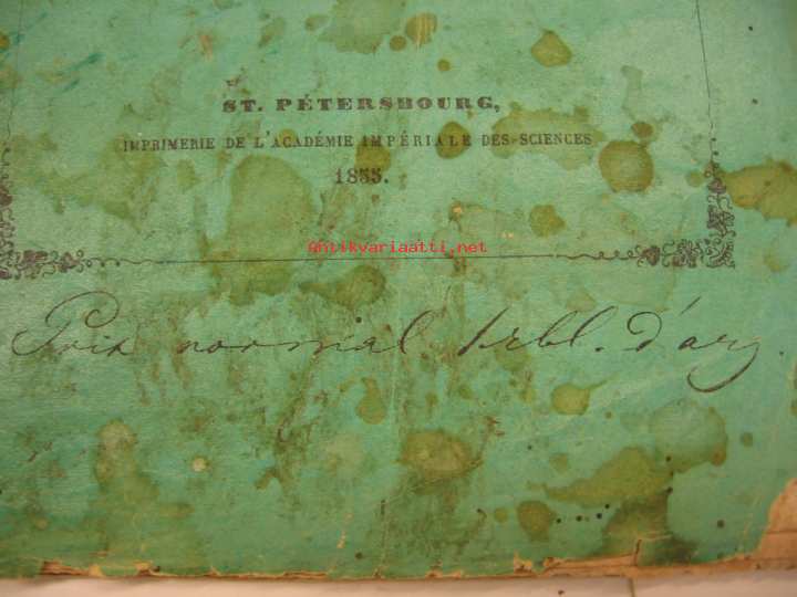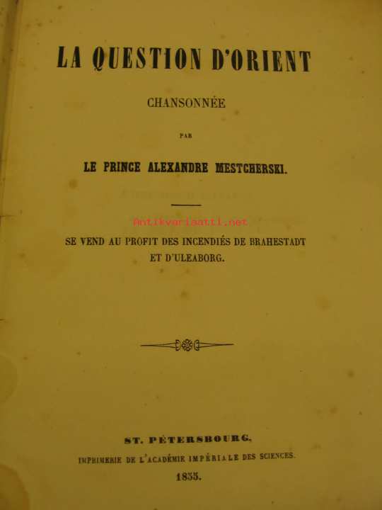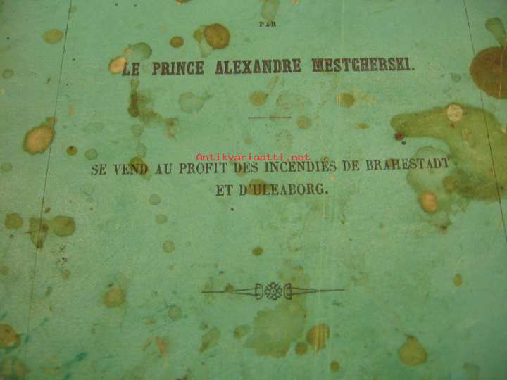 Ranskankielisiä laulelmia, painettu Pietarissa 1855, Krimin sodan riehuessa. Kannessa mainitaan, että tämän painotuotteen tuotto menee Brahestadt (Raahe) n ja Uleaborg´in (Oulun) kaupungin uhrien hyväksi. Eli englantilaisten aiheuttamien tuhojen korjaukseen. Erittäin erikoinen Oulu-kohde.