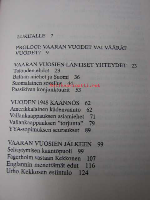 | Saatavilla | 1 kpl | | Julkaisuvuosi | 1990 | | Sivuja | 413 | | Painos | 2 | | Kunto | K3 | | Sidonta/painoasu | Sidottu (kansipaperit) | | ISBN | 951-30-9314-X | | Kielet | Suomi |