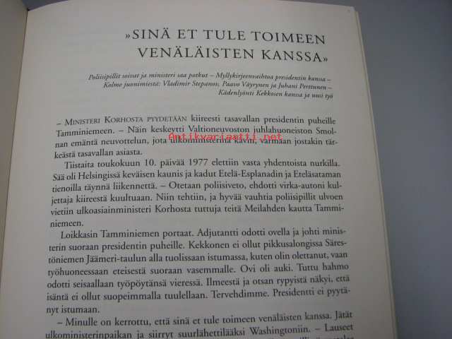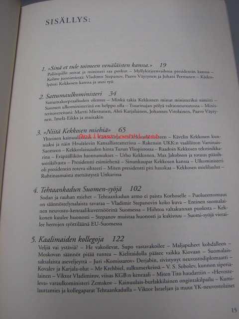 | Saatavilla | 1 kpl | | Julkaisuvuosi | 1999 | | Sivuja | 381 | | Painos | 3. | | Kunto | K3 | | Sidonta/painoasu | Sidottu (kansipaperit) | | ISBN | 951-1-15315-3 | | Kielet | Suomi |