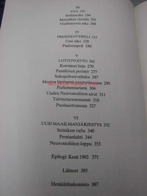 | Saatavilla | 1 kpl | | Julkaisuvuosi | 1992 | | Sivuja | 392 | | Painos | 1 | | Kunto | K3 | | Sidonta/painoasu | Sidottu (kansipaperit) | | ISBN | 951-1-12288-6 | | Kielet | Suomi |
