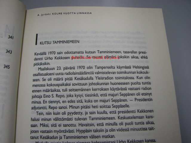 | Saatavilla | 1 kpl | | Julkaisuvuosi | 1990 | | Sivuja | 343 | | Painos | 2 | | Kunto | K3 | | Sidonta/painoasu | Sidottu (kansipaperit) | | ISBN | 951-0-16566-2 | | Kielet | Suomi |