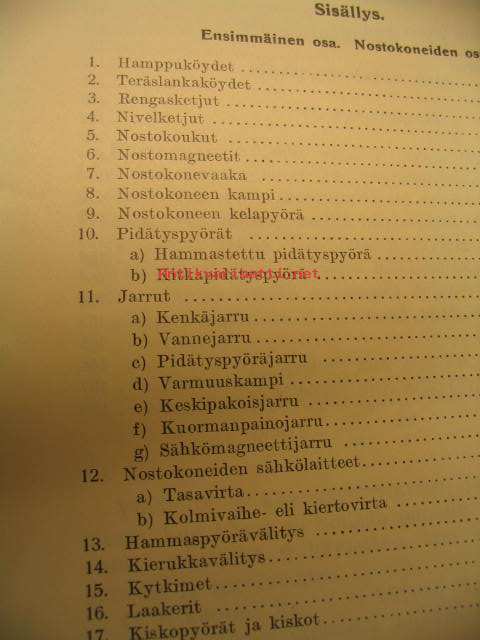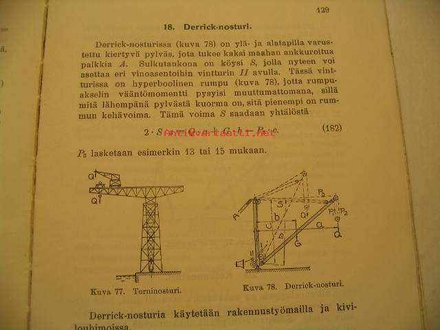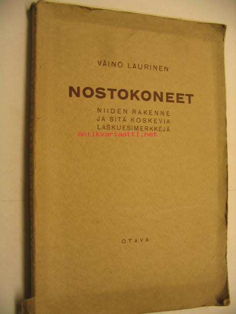 Laurinen Väinö, Otava, 1930Nostokoneet niiden rakenne ja sitä koskevia laskuesimerkkejä. Kuvia 95.