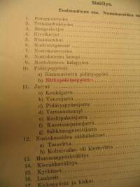 | Saatavilla | 1 kpl | | Julkaisuvuosi | 1930 | | Sivuja | 172 | | Painos | 1. | | Kunto | K3 | | Sidonta/painoasu | Nidottu (pehmeäk.) | | Kielet | Suomi |