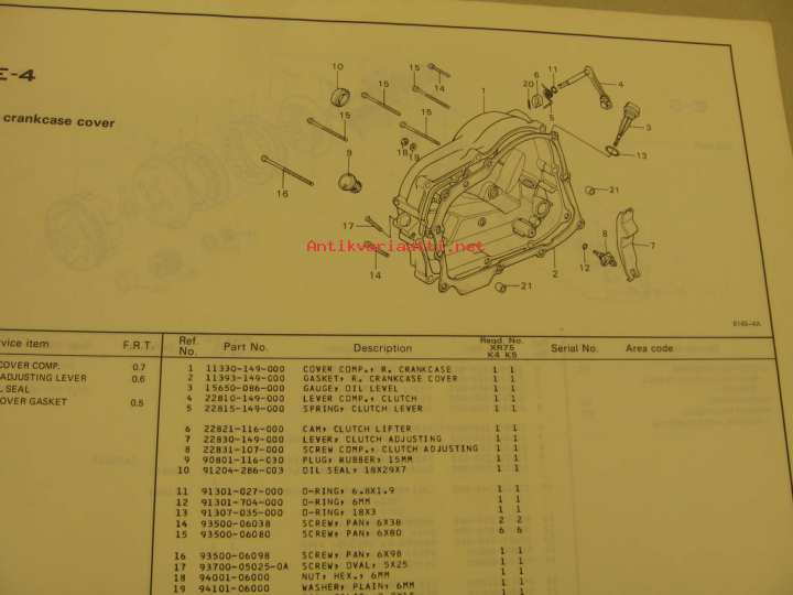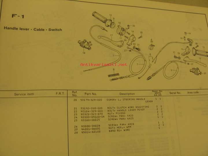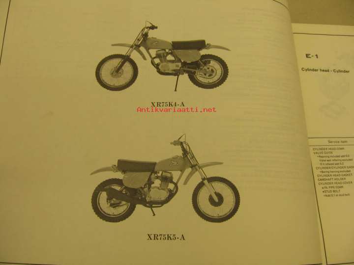 Honda XR75K4 XR75K5 Parts List varaosaluettelo