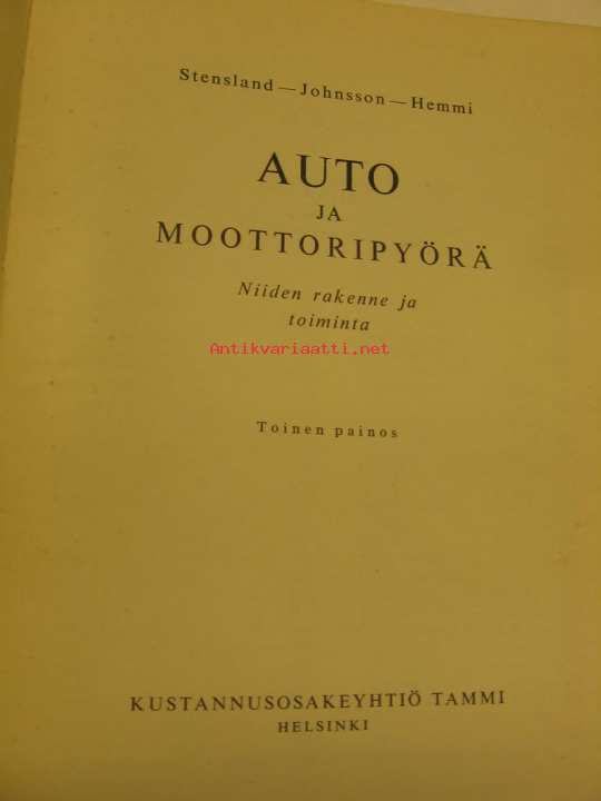 Johnson, Stensland, Hemmi, Tammi, 1959Autojen ja moottoripyörien rakenne ja toiminta perusteellisesti selvitettynä.