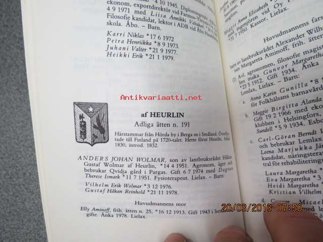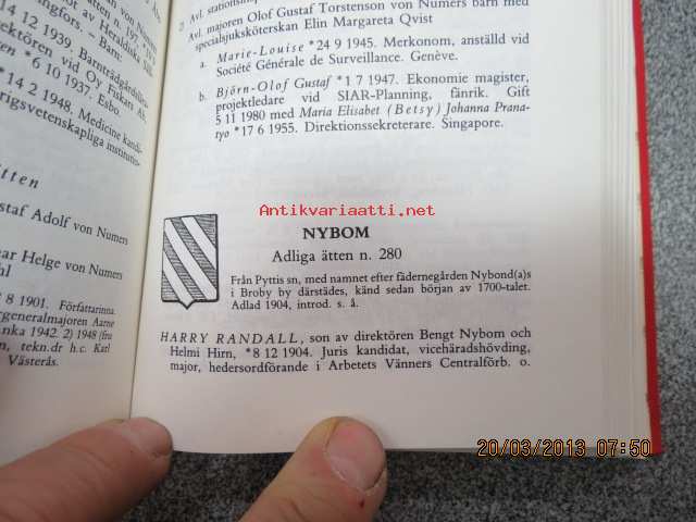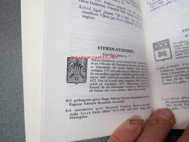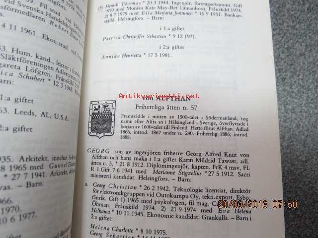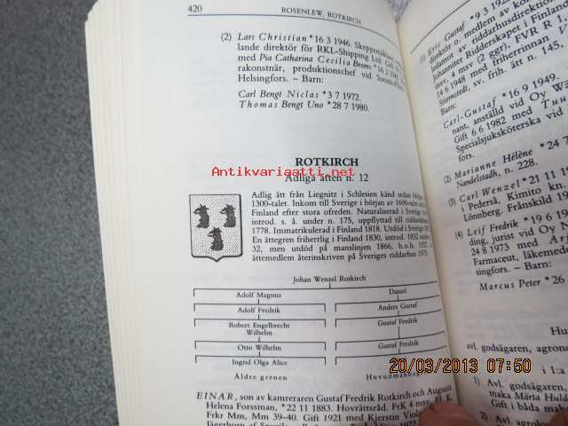 | Saatavilla | 1 kpl | | Julkaisuvuosi | 1983 | | Sivuja | 715 | | Painos | 1. | | Kunto | K2 | | Sidonta/painoasu | Sidottu (kovak.) | | Kielet | Ruotsi |