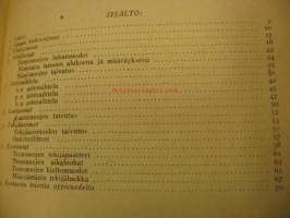 | Saatavilla | 1 kpl | | Julkaisuvuosi | 1940 | | Sivuja | 117 | | Kunto | K2 | | tyydyttävä, ehjä, paperin laatu hauras | | Sidonta/painoasu | Sidottu (kovak.) | | Kielet | Suomi |