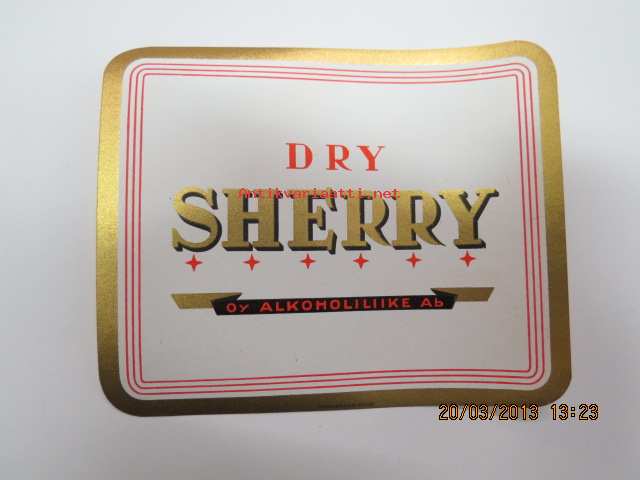 Dry Sherry -viinaetiketti 1930-luvulta