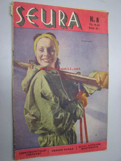 Seura 23. 2. 1949 nr 8 sis. mm. seur. artikkelit / kuvat / mainokset; naisten itsepuolustuskurssi, siiviililentokurssit, verensiirrot, rahanväärentäjät