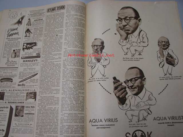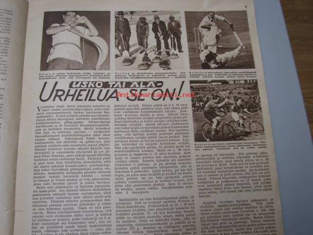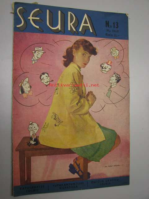 Seura 30. 3. 1949 nr 13 sis. mm. seur. artikkelit / kuvat / mainokset; sokkotesti tupakasta, outoja urheilulajeja, noitaroviot, Reynolds Flyer -mainos
