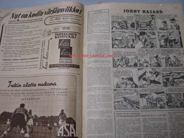 | Saatavilla | 1 kpl | | Julkaisuvuosi | 1949 | | Sivuja | 20 | | Kunto | K2 | | Sidonta/painoasu | Lehti | | Kielet | Suomi |