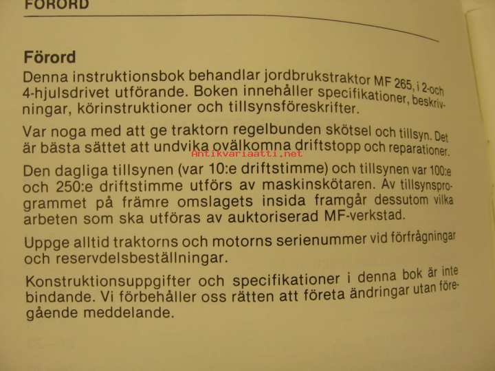 Massey-Ferguson 265 2- och 4-hjulsdrivna Instruktionsbok