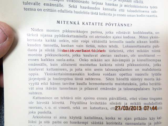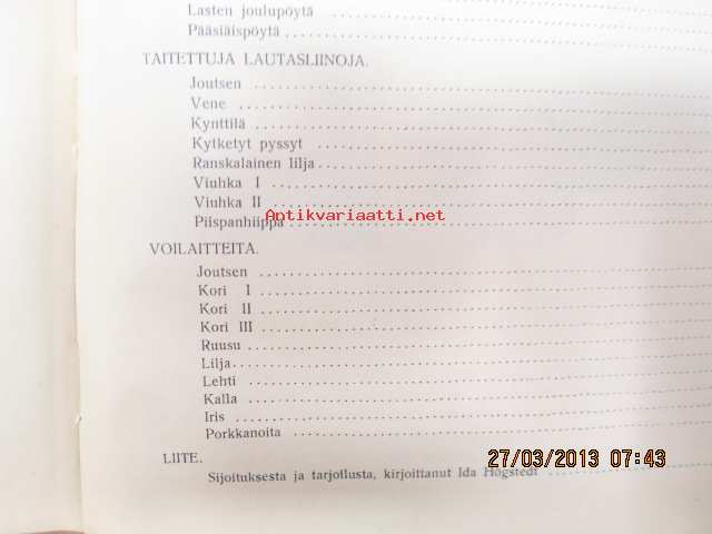 | Saatavilla | 1 kpl | | Julkaisuvuosi | 1926 | | Sivuja | 73 | | Painos | 2. | | Kunto | K2 | | Sidonta/painoasu | Kuvitettu kovakantinen | | Kielet | Suomi |