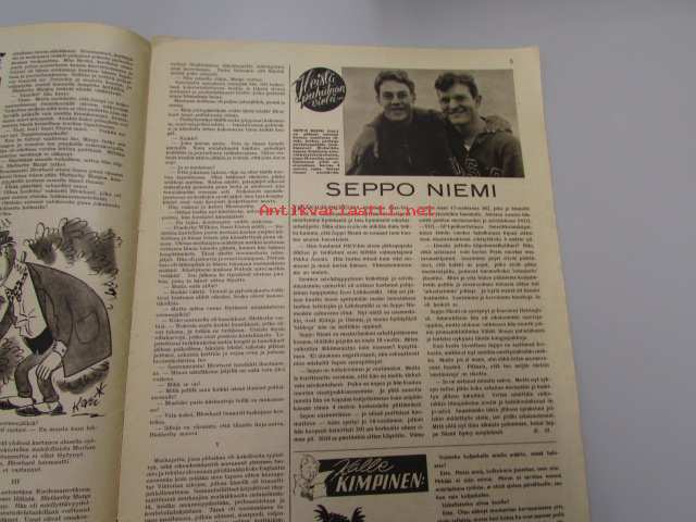 | Saatavilla | 1 kpl | | Julkaisuvuosi | 1949 | | Sivuja | 20 | | Kunto | K2 | | Sidonta/painoasu | Lehti | | Kielet | Suomi |