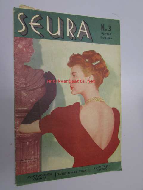 Seura 19. 1. 1949 nr 3 sis. mm. seur. artikkelit / kuvat / mainokset; Ava Gardner -kansi, lastenkasvatus, aviopuolison valinta, Fazer -leivontamainos