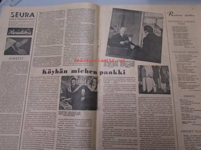 Yhtyneet Kuvalehdet Oy, 1946Seura 17. 4. 1946 nr 16-17 sis. mm. seur. artikkelit / kuvat / mainokset; Sinikka Koskela, kampausohjeita, Hollywoodin Mocambo-yökerho, Kale -matkalaukut -mainos, Hehku-seinäkello -mainos