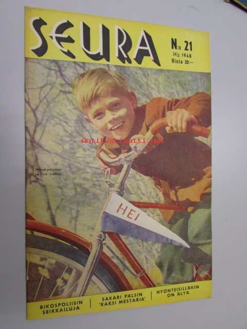Seura 26. 5. 1948 nr 21 sis. mm. seur. artikkelit / kuvat / mainokset; suomalaisten rikosetsivien kokemuksia, H.G. Wellsin elokuva, Peppiattien urheiluperhe, Lataus Oy -akkumainos, TEO -voidemainos