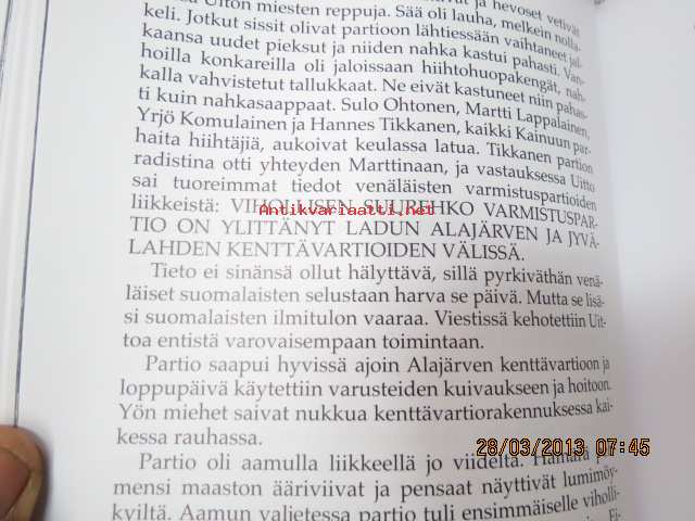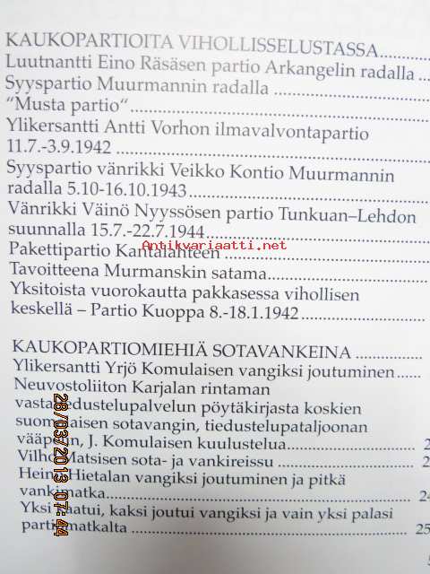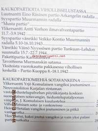 18 x 26 cm. Runsas mustavalkokuvitus. Neljäs kirja päämajan kaukopartioista kertovassa teossarjassa, jossa aikaisemmin ovat ilmestyneet Marskin kaukopartioritarit, Päämajan sissit, sekä Sissit erikoistehtävissä. Tämä teos kertoo erillisen pataljoona 4:n sotilaiden toiminnasta ja poikkeuksellisista partiotapahtumista: Arkangelin ja Muurmannin rautateille tehdyistä retkistä, vanginsieppauksista, vakoojien kuljetuksesta vihollisjoukkojen keskelle, sotavangiksi joutuneiden sissien kohtaloista sekä taisteluista Suomeen tuhoamistehtäviin suunnattuja suuria partisaaniosastoja vastaan. Tiedustelu- ja tuhoamisretkiä vihollisen selustaan tehneet päämajan kaukopartiot joutuivat usein vaarallisiin tilanteisiin.