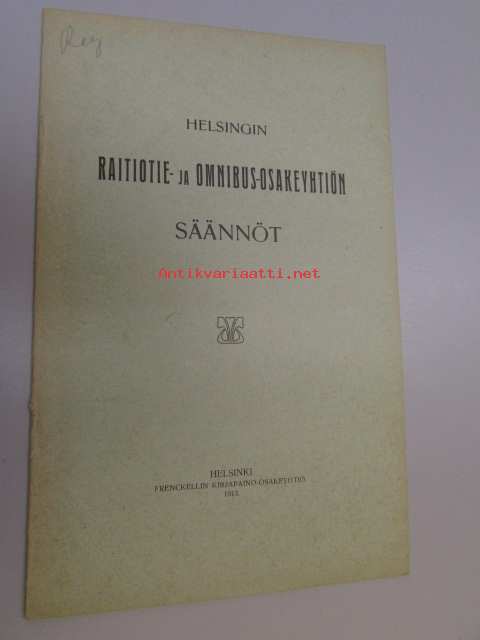 Helsingin Raitiotie- ja Omnibus-osakeyhtiö, 191318,5 x 24,5 cm.