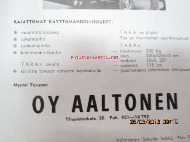 Kevyt perävaunu TARA-300 -myyntiesite