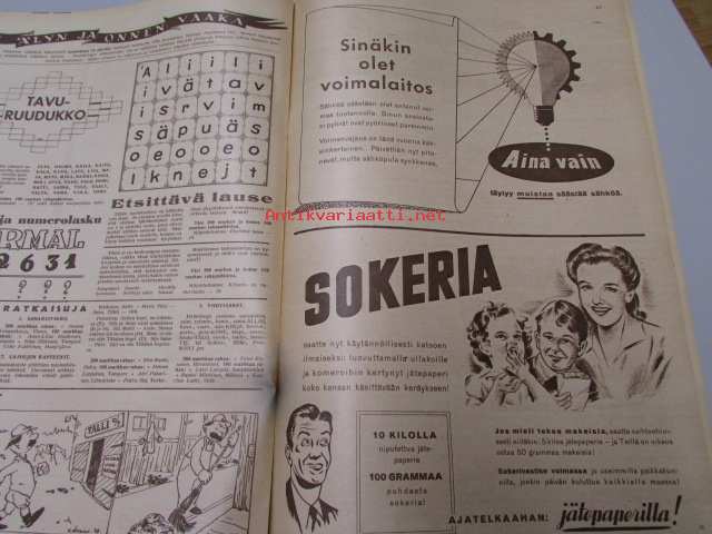 | Saatavilla | 1 kpl | | Julkaisuvuosi | 1948 | | Sivuja | 20 | | Kunto | K2 | | Sidonta/painoasu | Lehti | | Kielet | Suomi |