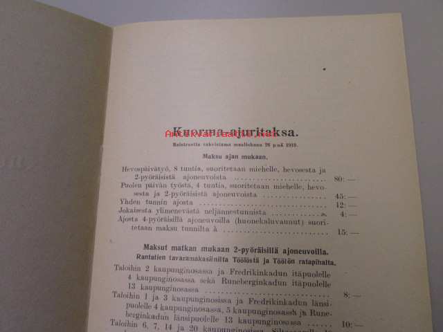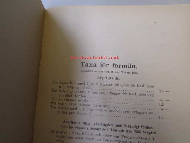 Kuorma-ajuritaksa Helsinki 1925 / Formanstaxa Helsingfors 1925